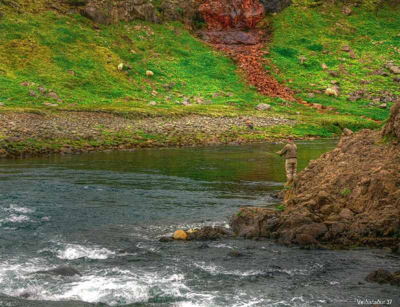 Þessi staður gefur ekki marga laxa yfir sumarið en oft er hægt að lenda í ævintýralegri silungsveiði, þá aðallega sjóbleikju. Veiðið frá horni grasbakkans sem er austan árinnar og niður strenginn. Fiskur tekur oft í miðjum hylnum.