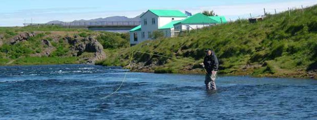 Veiðistaður 124 Festarfljót - Festarfljót er veiðistaðurinn undir rafmagnslínunni sem liggur vestur á Snæfellsnes. Áin fellur þar að klöpp á austurbakkanum og myndar fallegan streng þar niðuraf. Oft stopar fiskur í göngu rétt ofan við klöppina en aðal tökustaðurinn er við stein sem brýtur á um miðjan hylinn. Hér er einnig oft bleikja yfir sumarið.