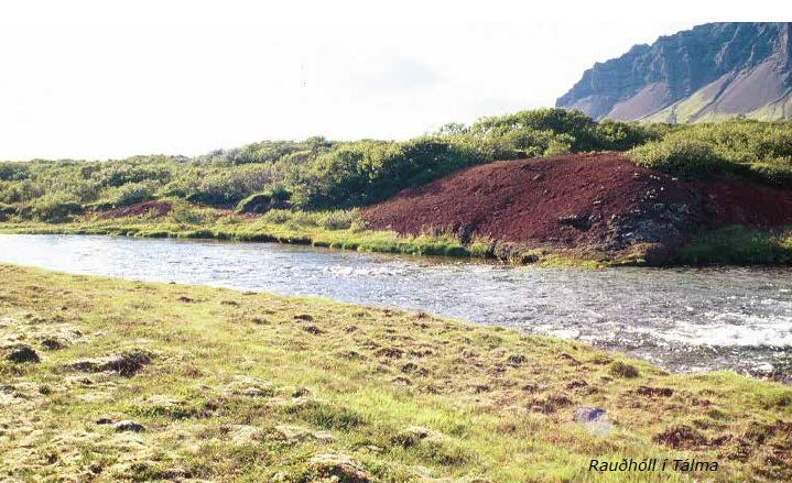 Tálmi 9 - Rauðhóll - Rauðhóll dregur nafn sitt af rauðleitum vikurhól á bakkanum vestanmegin. Meðfram Rauðhólnum er grunnur strengur og liggur laxinn við landið að vestanverðu ef hann er á þessum stað á annað borð. Gott er að fara yfir þennan stað með flugu og getur laxinn legið í örgrunnu vatni neðantil í staðnum ef vatn er gott. Síðasta sumar var töluvert um að lax stoppaði í Rauðhól og fengust þónokkrir á mismunandi Frances flugur.